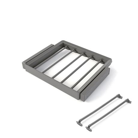 - Kit composé de 7 tringles à pantalon et d'un cadre avec des glissières réglables en largeur pour des modules de 60 cm.