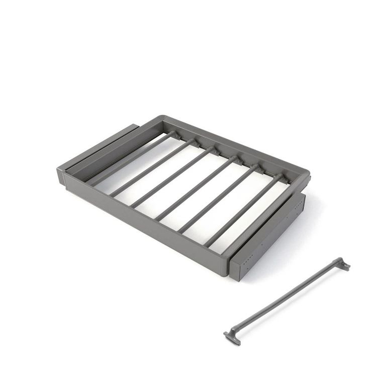Kit de porte-pantalon à 7tringles et rack ajustable Quartz pour armoires - glissières extension totale et à fermeture douce - Module 70cm - Finition Titane