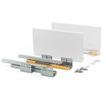 Le tiroir de cuisine et salle de bain Concept est disponible en kit avec toutes les ferrures nécessaires pour le montage et offre une grande capacité de charge, jusqu'à 30 kg par tiroir. Le kit contient les coulisses à sortie totale et fermeture amortie , un jeu de fixations et un jeu de côt