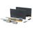 - Contient les coulisses à sortie totale, un jeu de côtés, un jeu de fixations arrière et un jeu de fixations frontales pour tiroir extérieur.