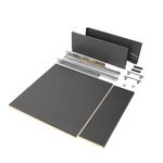 Les panneaux inclus pour le fond et le dos sont en panneaux de particules en gris anthraciteet blanc, avec une surface rugueuse pour donner une plus grande résistance de surface. Les panneaux ont une épaisseur de 16 mm et sont découpés sur mesure à partir de modules standard (450 mm, 600 mm et 900 mm). Cependant, peut être coupé pour s'adapter à la largeur du module nécessaire.