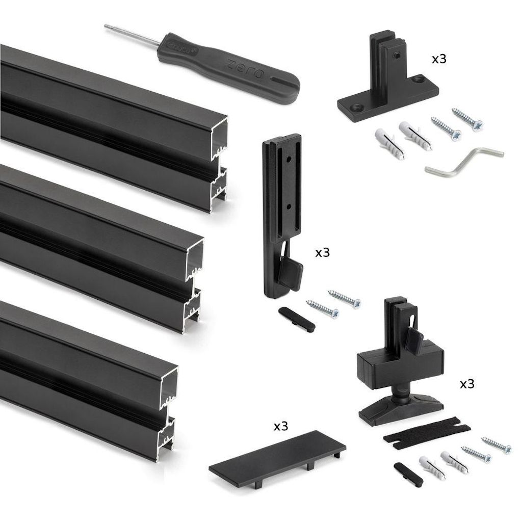 Kit structure modulaire Zero pour ferrures et profils, montage sol et mur, triple, noir