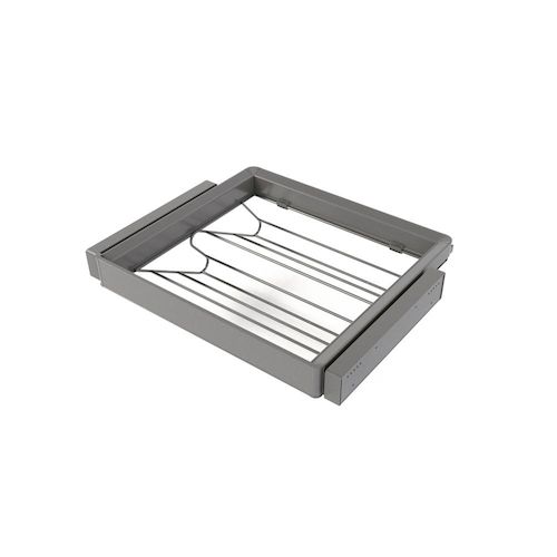 - Kit composé d'un tiroir à chaussures en fil métallique et d'un cadre avec des glissières réglables en largeur pour des modules de 90 cm.