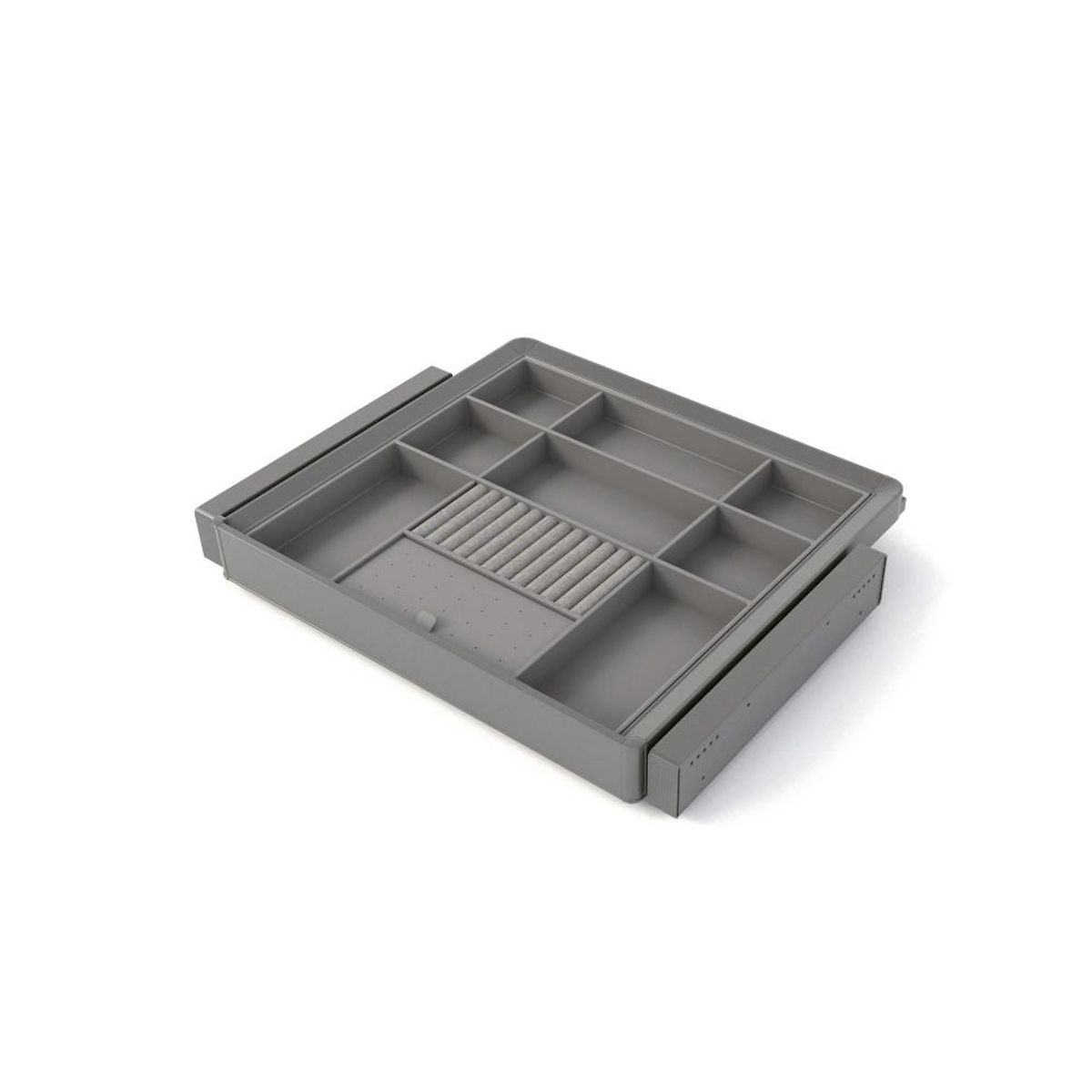 - Kit composé d'un tiroir organisateur et d'un cadre avec des glissières réglables en largeur pour des modules de 60 cm.