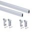Le kit contient tout le nécessaire pour le montage de deux barres penderie d'armoire 30x15 mm Silk : la barre, les supports latéraux et les vis M6 pour le montage. La barre inclut un caoutchouc en PVC extrudé pour éviter le bruit des cintres qui s'entrechoquent.
