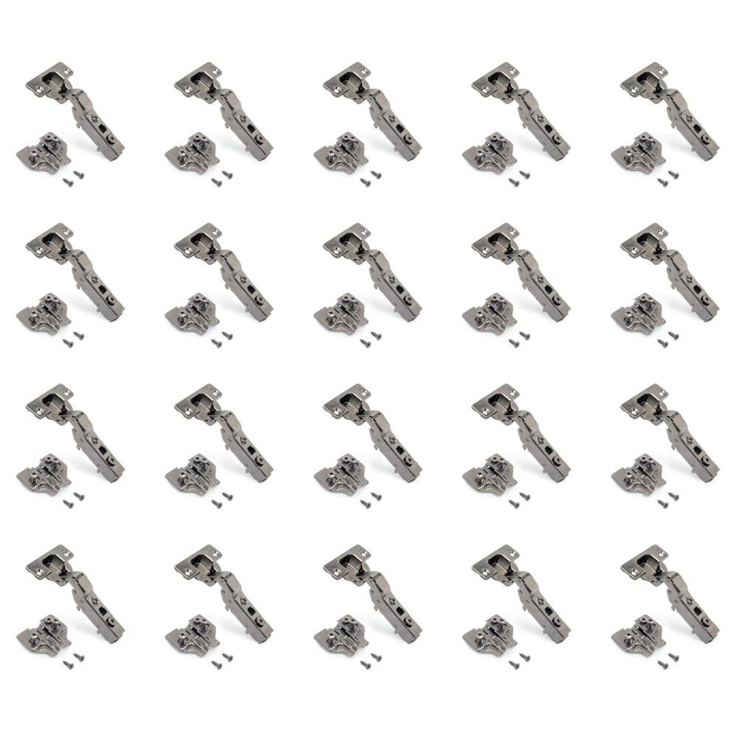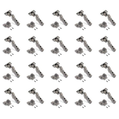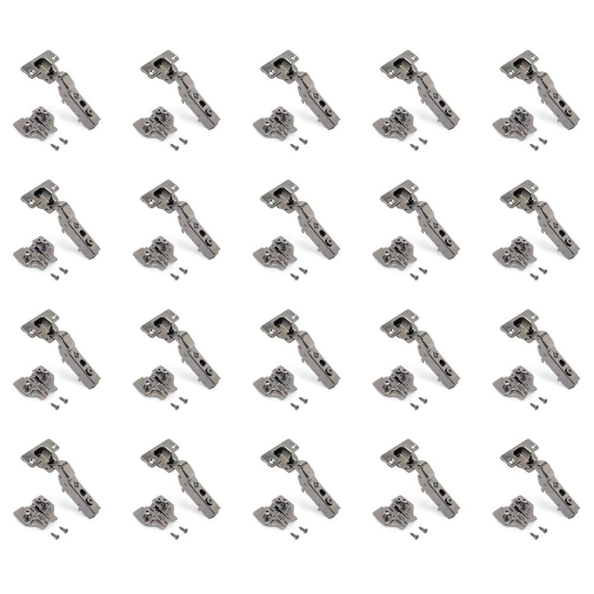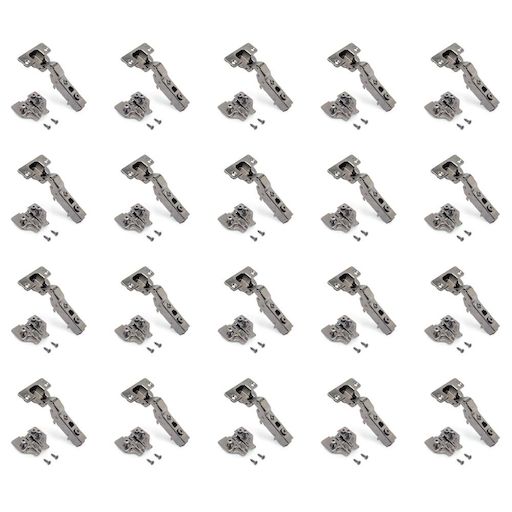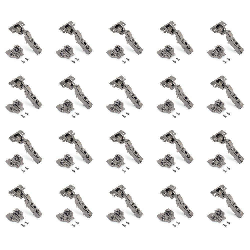 Lot de 20 charnières coudées X91 avec fermeture amortie et embases Euro - hauteur 0 - nickelé - titane