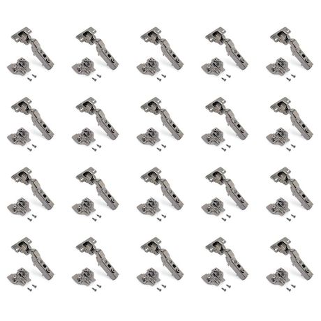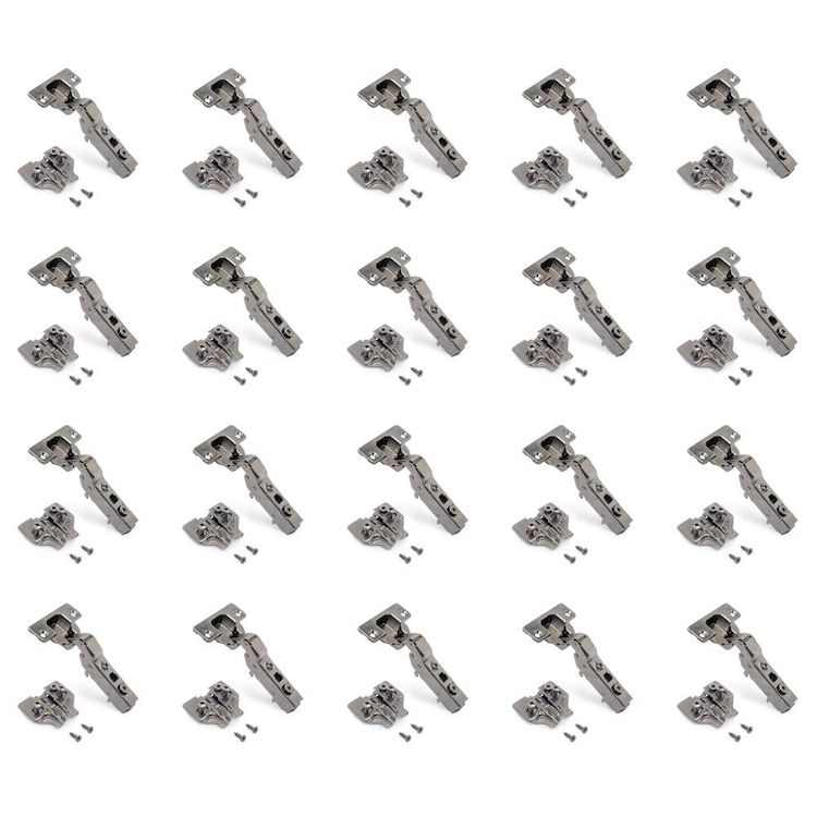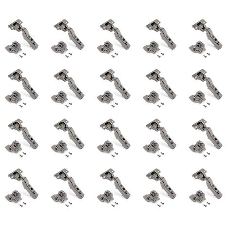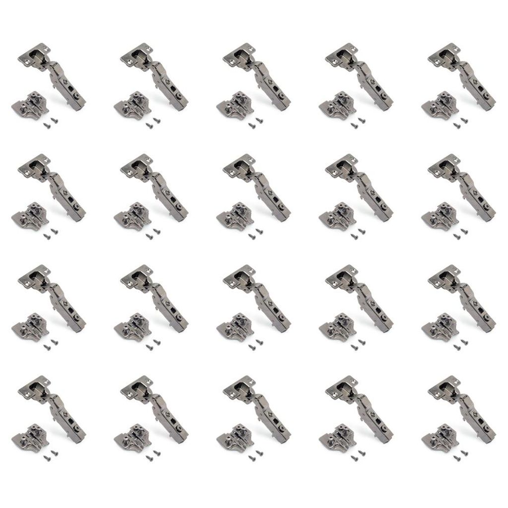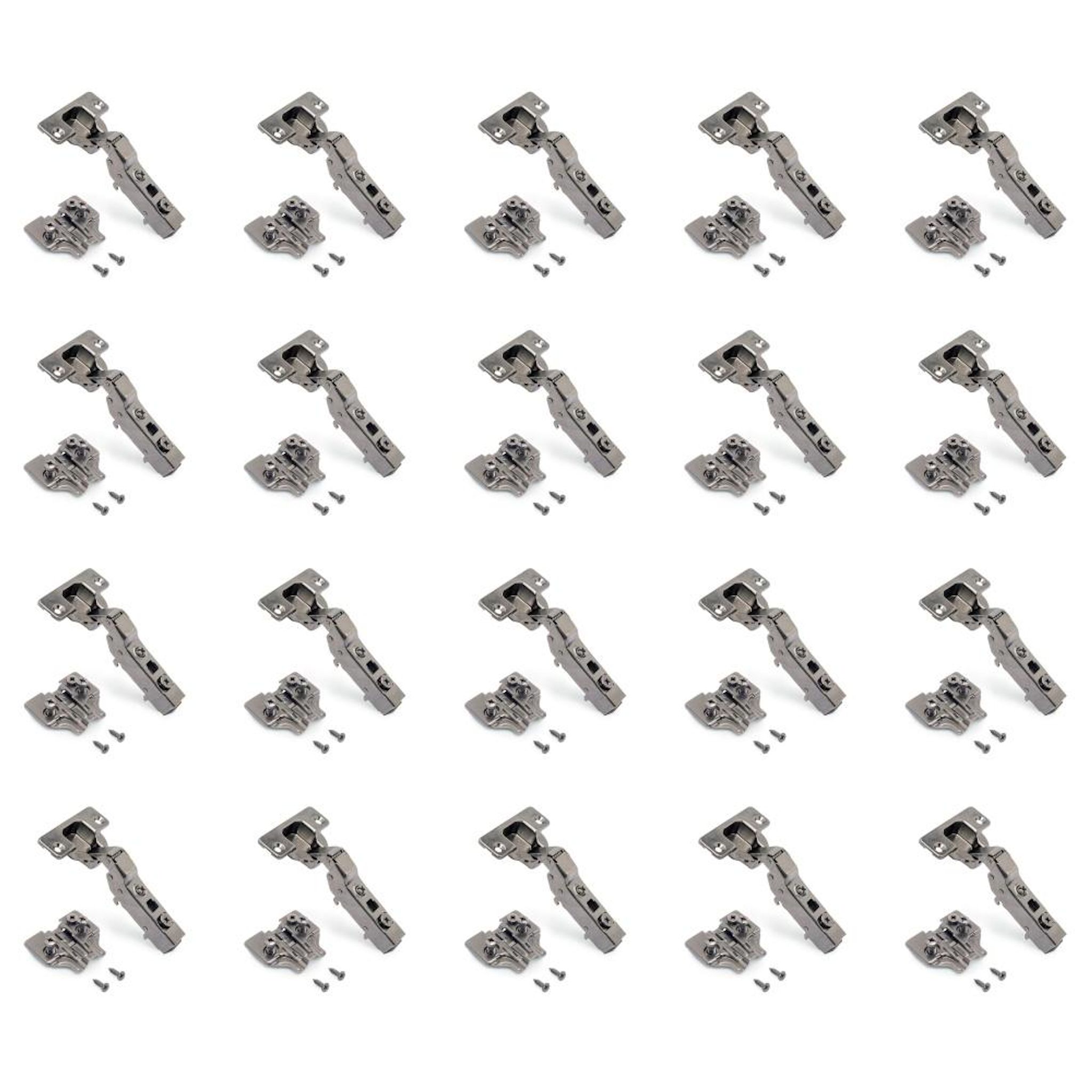 Lot de 20 charnières coudées X91 avec fermeture amortie et embases Euro - hauteur 0 - nickelé - titane