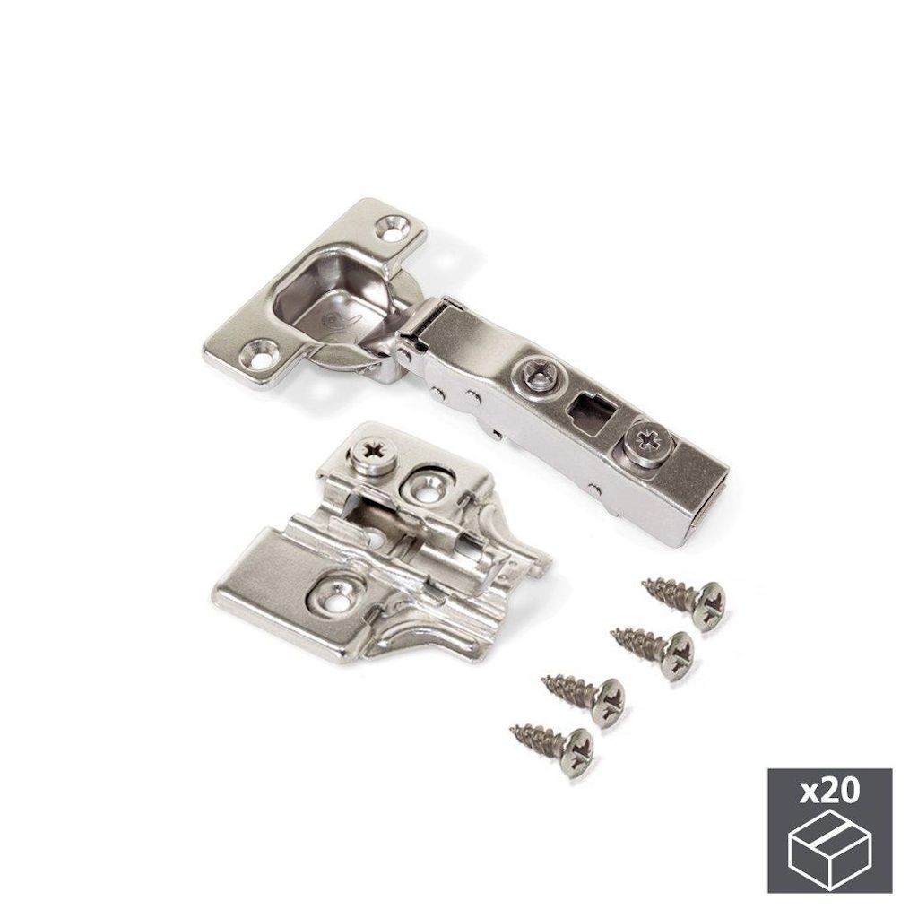 Lot de 20 charnières droites X91N avec ouverture 100º et embases avec réglage excentrique à visser