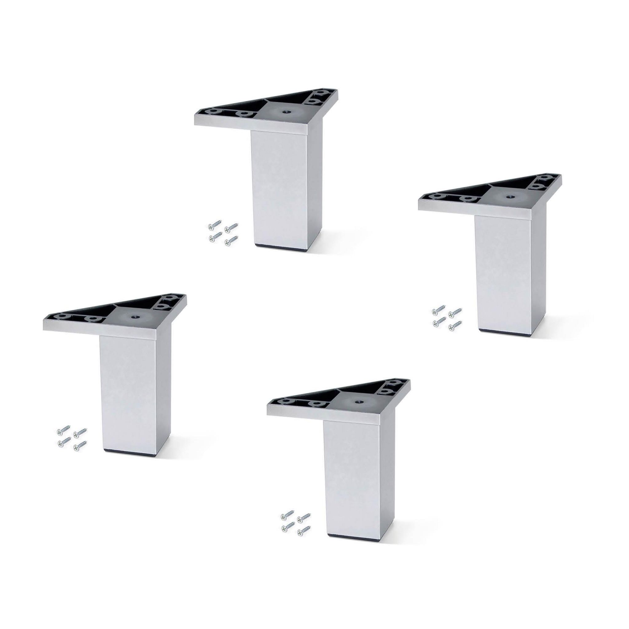 Lot de 4 pieds pour meuble Alumix 1 - hauteur 100mm - Plastique - chromé