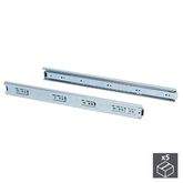 Coulisses à billes à sortie totale fabriquées en acier zingué. Ce type de coulisses s'installe sur une rainure de 45 mm de largeur sur le côté du tiroir. Les vis de montage ne sont pas incluses. Avec gâchette pour le démontage. Charge maximum 35kg.