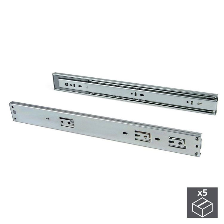 Lot de 5 paires de coulisses à billes pour tiroir à sortie totale 45 mm x L 400 mm avec fermeture amortie