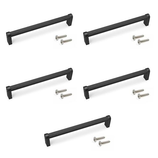 Lot de 5 poignées pour meubles Bergen - L173mm - entraxe 160mm - Aluminium - Peint en noir