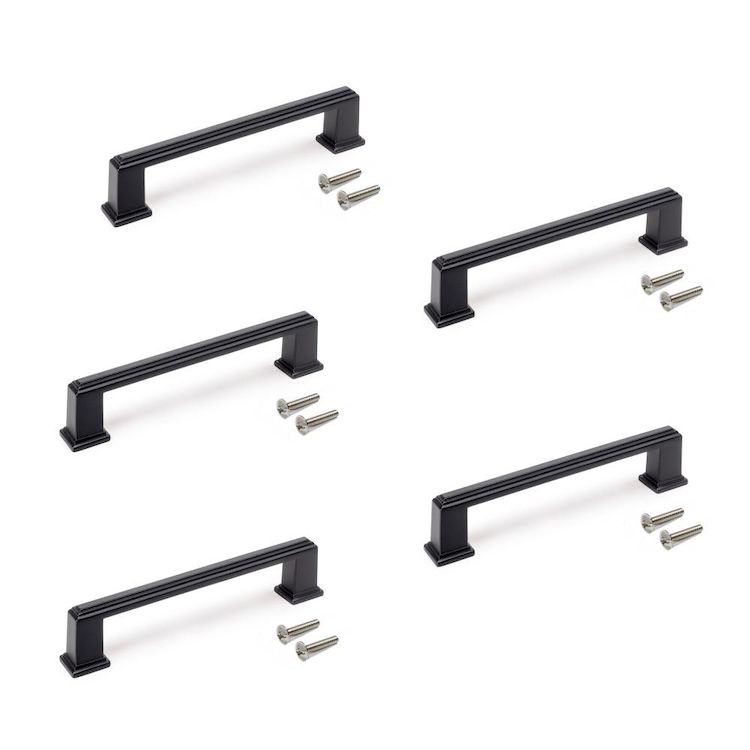Lot de 5 poignées pour meubles Tanger - L147.5mm - entraxe 128mm - Zamak - Peint en noir