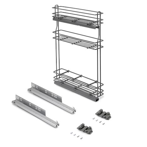 porte-bouteilles extractible TitaneMax avec fermeture à amortie - gauche - 3 plateaux - module 150mm - Acier - Gris Anthracite