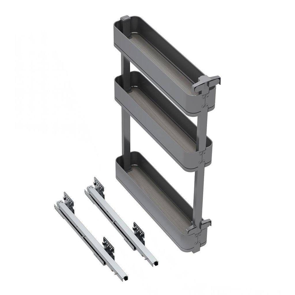 - Équipé de coulisses invisibles à sortie totale avec amortisseur de fermeture et capacité de charge de 25 kg, idéal pour un accès facile aux bouteilles, boîtes, bocaux et autres produits de cuisine.