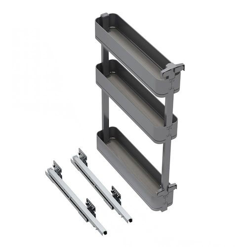 - Range-bouteilles latéral coulissant avec 3 paniers, conçu pour optimiser le rangement et exploiter au maximum l'espace dans les meubles de cuisine – une solution à la fois fonctionnelle et esthétique.