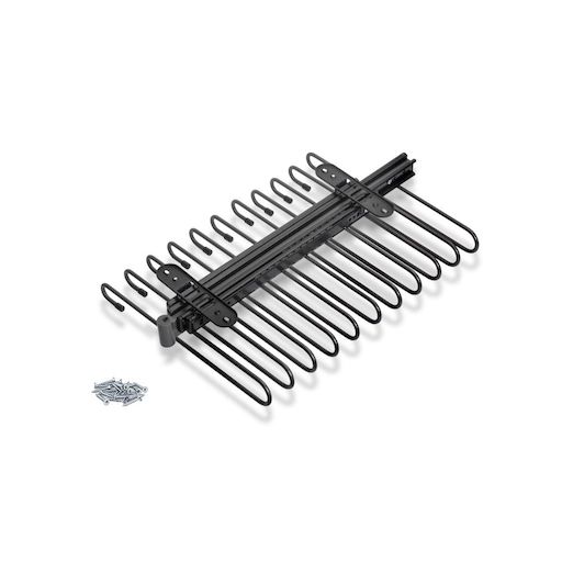 - Il comprend 11 tringles qui permettent d'accrocher plusieurs vêtements, avec des élastiques antidérapants qui empêchent les vêtements de glisser, une poignée à l'avant pour faciliter le retrait et des vis pour la fixation.