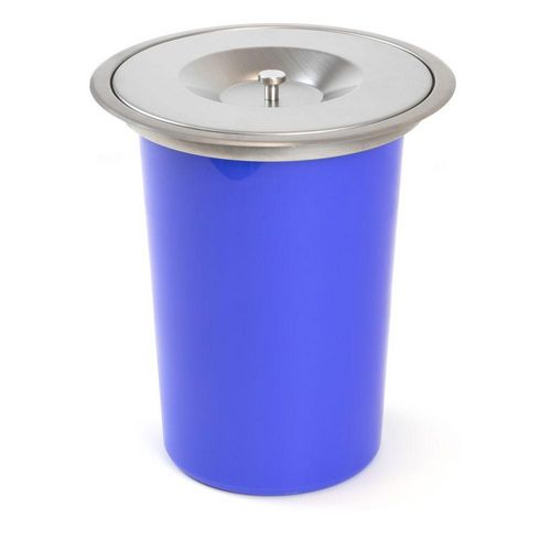 Disponible en deux tailles (6 et 8 litres). Pour son installation il est nécessaire un usinage préalable dans le plan de travail. Avec deux anneaux d'appui en acier, l'un pour assurer la stabilité de la poubelle et l'autre pour placer et maintenir les sacs à ordures.La fourniture comprend un conteneur, le couvercle, deux anneaux et des instructions de montage.En plastique bleu et en acier inoxydable.