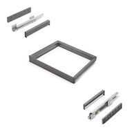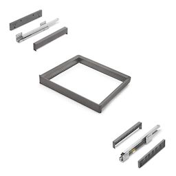 Le kit comprend tout ce dont vous avez besoin pour une installation rapide et soignée : 1 cadre, 1 jeu de coulisses, 1 jeu d'entretoises, 1 jeu d'enjoliveurs, 8 vis (Ø3,5x30 mm) et 4 vis (Ø4,5x20 mm), le tout dans un emballage soigné.
