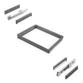 Le kit comprend tout ce dont vous avez besoin pour une installation rapide et soignée : 1 cadre, 1 jeu de coulisses, 1 jeu d'entretoises, 1 jeu d'enjoliveurs, 8 vis (Ø3,5x30 mm) et 4 vis (Ø4,5x20 mm), le tout dans un emballage soigné.