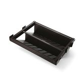 Kit range-chaussures et cadre coulissant réglable pour l'adapter à l'intérieur de l'armoire. La structure est équipée avec des coulisses à sortie totale et fermeture amortie, et d'un système de clipsage automatique et rapide pour son installation. Le cadre coulissant est fabriqué en aluminium finition couleur moka.