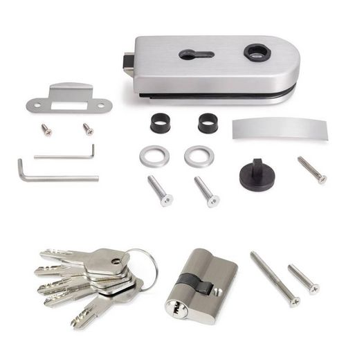 - Serrure horizontale pour porte en verre avec cadre en bois. Compris un cylindre en acier inoxydable 20+30 avec 5 clés. Idéale pour les portes de maisons et de bureaux.