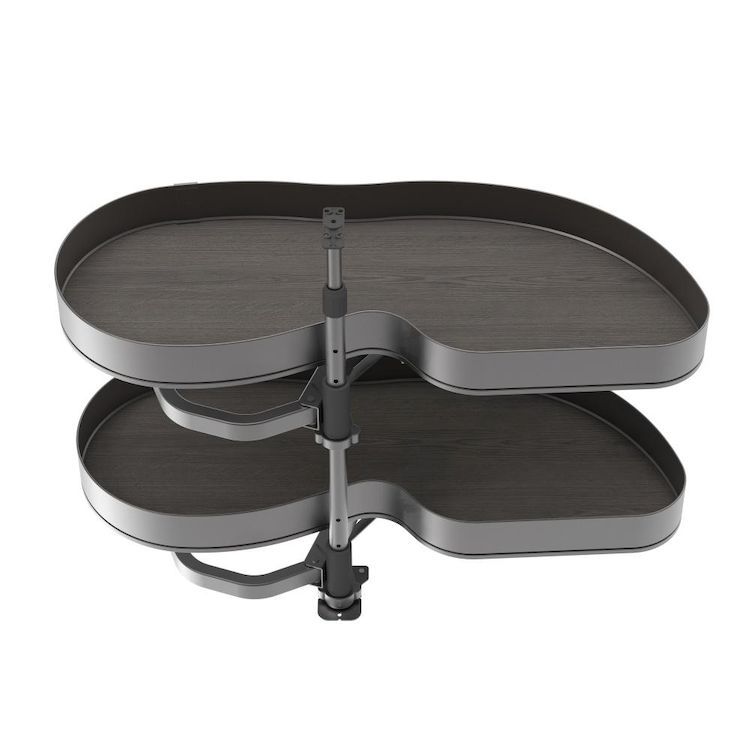 Systéme d'angle Lake Harmony pour meuble de cuisine - Droite - Hauteur réglable - Acier et Bois - Gris anthracite
