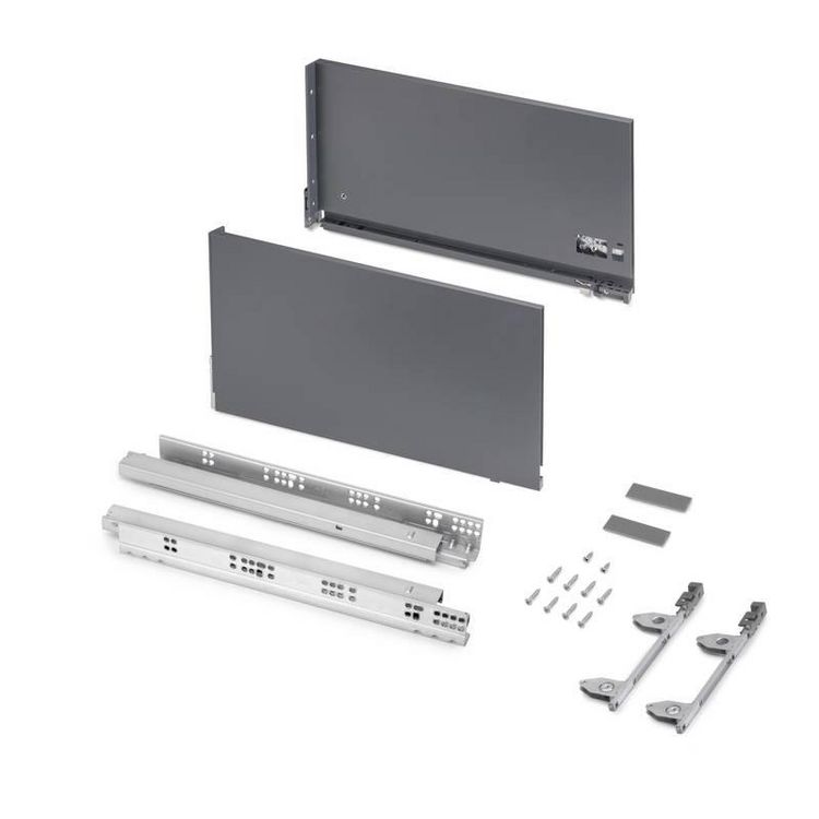 - Kit de ferrure nécessaire au montage d'un tiroir extérieur à double paroi métallique. Pour les meubles de cuisine, de salle de bains ou de placard avec une hauteur de cà´te latérale de 242 mm.