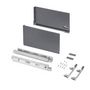 Kit de ferrure nécessaire au montage d'un tiroir extérieur à double paroi métallique. Pour les meubles de cuisine, de salle de bains ou de placard avec une hauteur de cà´te latérale de 242 mm.U dispose d'un réglage frontal en 3D : vertical au moyen d'un excentrique de ±2 mm, horizontal ±1 mm, inc