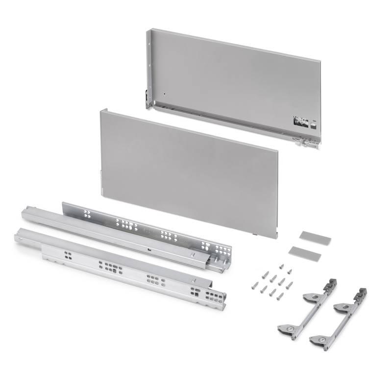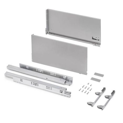 - Kit de ferrure nécessaire au montage d'un tiroir extérieur à double paroi métallique. Pour les meubles de cuisine, de salle de bains ou de placard avec une hauteur de cà´te latérale de 242 mm.