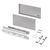 Kit de ferrure nécessaire au montage d'un tiroir extérieur à double paroi métallique. Pour les meubles de cuisine, de salle de bains ou de placard avec une hauteur de cà´te latérale de 242 mm.U dispose d'un réglage frontal en 3D : vertical au moyen d'un excentrique de ±2 mm, horizontal ±1 mm, inc