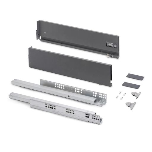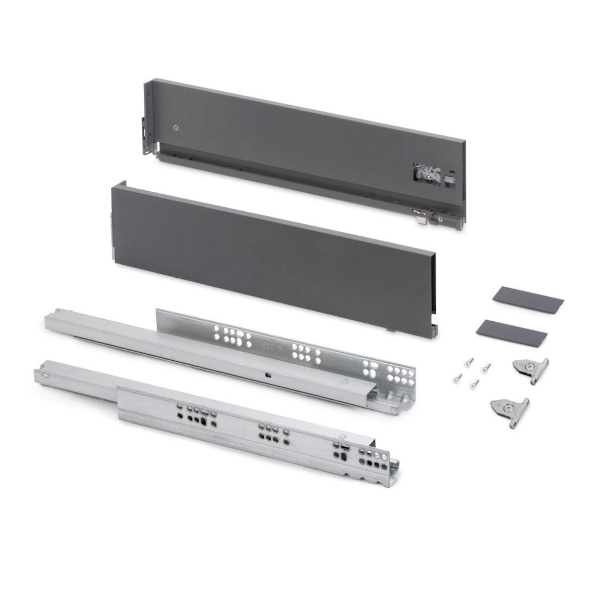 Tiroir extérieur Vertex avec réglages 3D hauteur 131mm - 40kg - épaisseur de panneau de 18mm - profondeur 450mm - Acier - Gris antracite