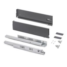 - Kit de ferrures nécessaires pour le montage d'un tiroir extérieur de hauteur 131 mm et profondeur 350 mm, n'incluant pas le fond, la façade ni la façade arrière.