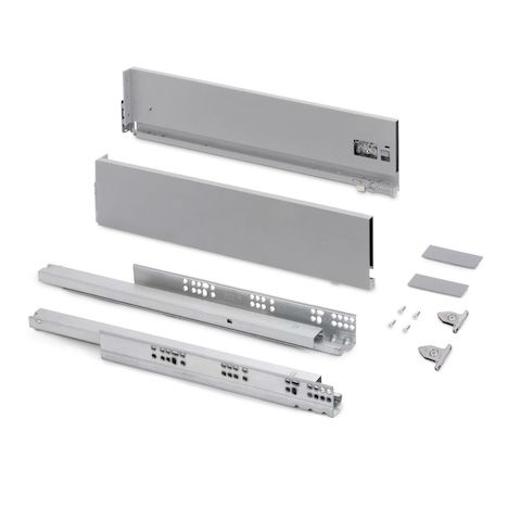 - Kit de ferrures nécessaires pour le montage d'un tiroir extérieur de hauteur 131 mm et profondeur 350 mm, n'incluant pas le fond, la façade ni la façade arrière.
