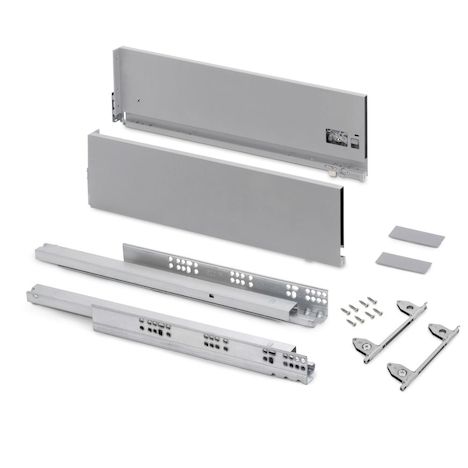 - Kit de ferrures nécessaires pour le montage d'un tiroir extérieur de hauteur 131 mm et profondeur 500 mm, n'incluant pas le fond, la façade ni la façade arrière.