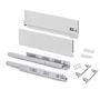 Comprend: deux côtés latérales, un ensemble de guides à fermeture amortie, un ensemble de couvre-garnitures et des attaches avant de tiroir.