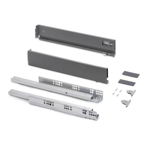 - Kit de ferrures nécessaires pour le montage d'un tiroir extérieur de hauteur 83 mm et profondeur 450 mm, n'incluant pas le fond, la façade ni la façade arrière.