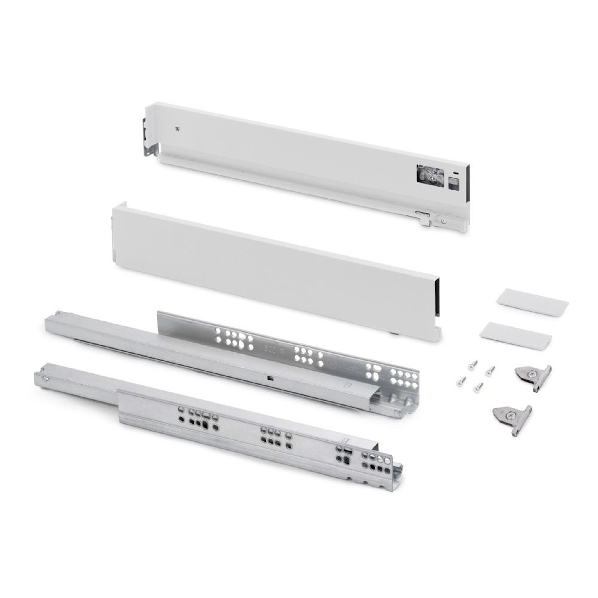 - Kit de ferrures nécessaires pour le montage d'un tiroir extérieur de hauteur 83 mm et profondeur 450 mm, n'incluant pas le fond, la façade ni la façade arrière.