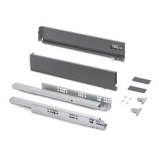 - Kit de ferrures nécessaires pour le montage d'un tiroir extérieur de hauteur 93 mm et profondeur 500 mm, n'incluant pas le fond, la façade ni la façade arrière.
