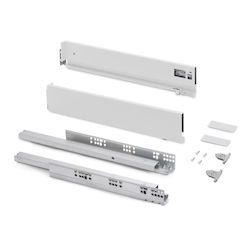 - Kit de ferrures nécessaires pour le montage d'un tiroir extérieur de hauteur 93 mm et profondeur 400 mm, n'incluant pas le fond, la façade ni la façade arrière.