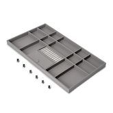 , il s'adapte facilement aux différentes configurations d'armoires. L'installation est très simple, puisqu'il suffit de placer le plateau sur le cadre, en veillant à ce qu'il soit solidement fixé à l'aide des supports en plastique fournis.