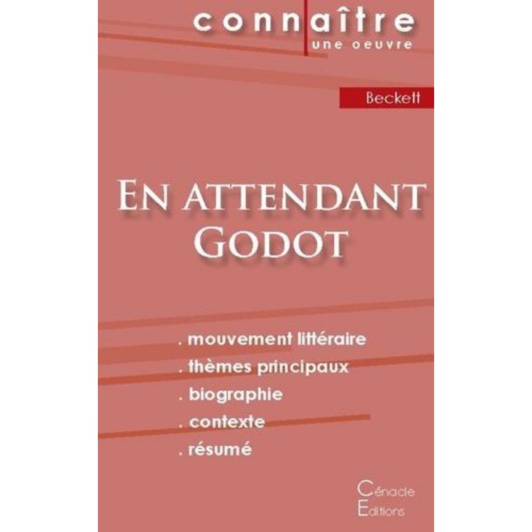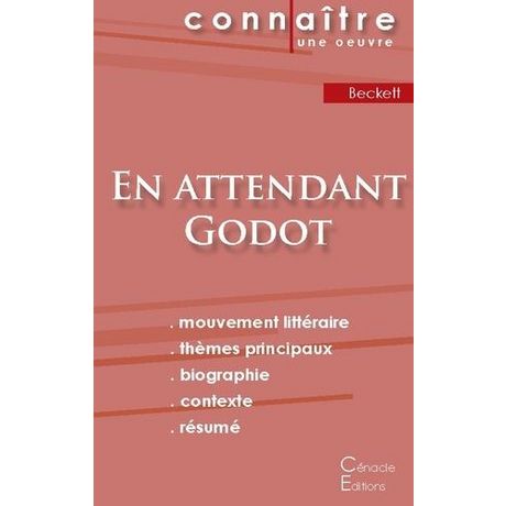 La collection Fichebook vous offre la possibilité de tout savoir de la pièce En attendant Godot de Samuel Beckett grâce à une fiche de lecture aussi complète que détaillée. La rédaction, claire et accessible, a été confiée à un spécialiste universitaire. Cette fiche de lecture répond à une chart