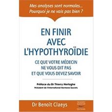 Ce livre s'adresse à tous les hypothyroïdiens qui passent de médecin en médecin sans trouver de solutions à leur mal-être : fatigue chronique, prise de poids, frilosité, déprime, troubles de la mémoire, perte de cheveux... Il dénonce un déni : la grande majorité des insuffisances thyroïdiennes ne sont pas diagnostiquées et quand elles le sont, elles sont mal prises en charge. Le Dr Claeys explique en détail pourquoi la thyroïde peut être à l'origine de vos symptômes, même quand les analyses sont «normales», comment faire le bon diagnostic et surtout comment traiter efficacement. Vous saurez : si vos symptômes viennent d'un dysfonctionnement de la thyroïde (test exclusif) les bonnes analyses à demander pourquoi il ne suffit pas simplement d'être «dans les normes» pourquoi le dosage de la TSH n'est pas fiable quels sont les traitements adaptés au cas par cas ce qu'est une hypothyroïdie à R-T3 et comment la traiter les vitamines et oligo-éléments indispensables en cas d'hypothyroïdie comment réduire les toxiques qui interfèrent avec la thyroïde Illustré de nombreux cas cliniques, écrit avec humanité, ce livre peut mettre fin au calvaire de millions de personnes.