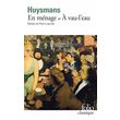 Dans En ménage (1881) et A vau-l'eau (1882), Huysmans capte un fragment de vie de deux hommes que le monde moderne écrase. André, l'antihéros d'En ménage, est un écrivain raté. Dans une scène qui tient du vaudeville, il surprend son épouse avec un amant et jure qu'on ne le reprendra plus dans les bras d'une femme. Mais, pris par des crises juponnières , cet irrépressible besoin d'une présence féminine, il tente quelques expériences... vouées à l'échec. Dans A vau-l'eau, M. Folantin, célibataire endurci, cherche désespérément un restaurant acceptable... transformant le récit en une formidable odyssée des gargotes . Si l'influence du naturalisme et de Zola est bien présente dans ces romans parus peu avant A Rebours, déjà une voix propre se fait entendre : celle d'un auteur qui dépeint, avec un humour noir, le renoncement aux idéaux, la médiocrité du quotidien, la douleur des désillusions.