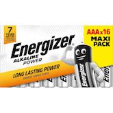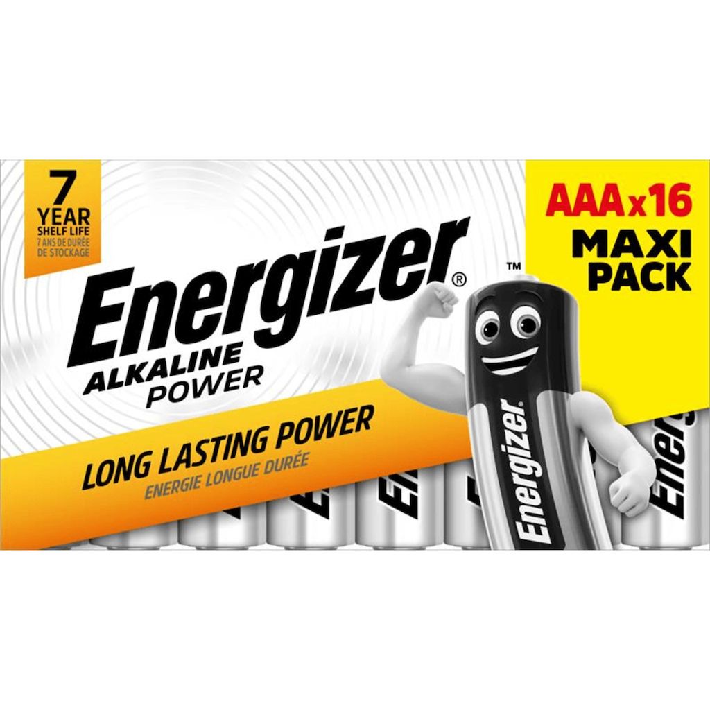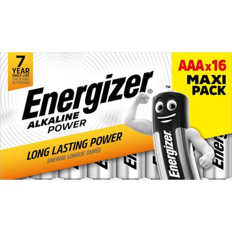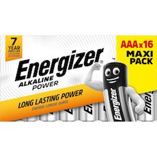 Nom du produit : Lot de 16 pilesNom de la série : PowerMarque du produit : ENERGIZERNombre de piles : 16Nom des piles : LR03 AAAFréquence d'utilisation : StandardProduit emballé : poids (en kg) : 0.2Produit emballé : profondeur (en cm) : 2.8Produit emballé : largeur (en cm) : 9.1Produit emballé : ha