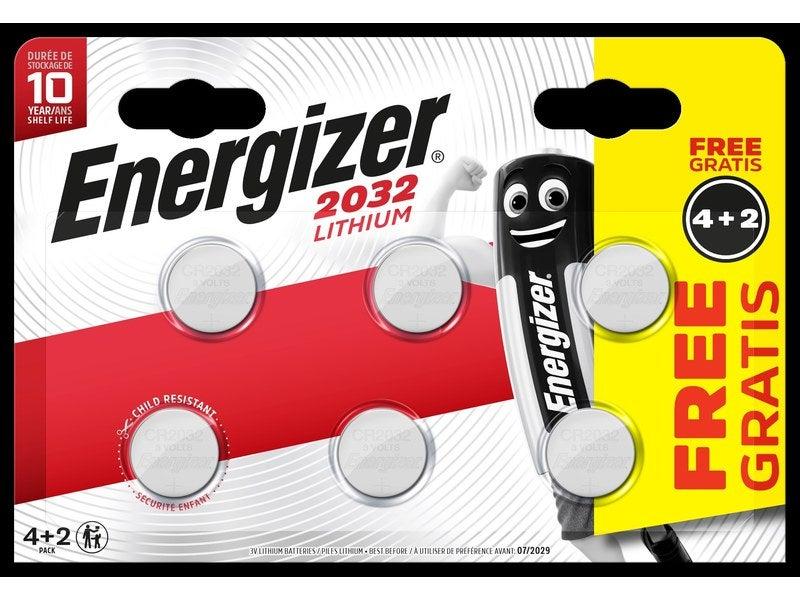Type de pile d'alimentation: Bouton Nom du produit: Lot de 4 + 2 piles Nom des piles: CR2032 / DL2032 Marque du produit: ENERGIZER Fréquence d'utilisation: Intensif Tension (en V): 3 Nombre de piles: 6 Préchargé: Non Produit emballé : poids (en kg): 0.03 Produit emballé : profondeur (en cm): 16.7