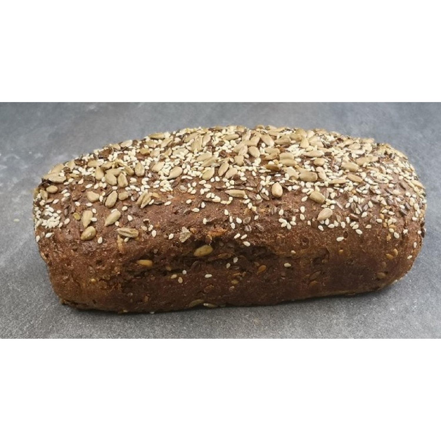 Ingrédients : Eau, mélange de protéines 17% (blé, soja), soja concassé 10%, graines de lin 8%, graines de tournesol 4%, farine de soja 3%, farine de blé complète 3%, son de blé 3%, fibres de pomme, graines de sésame 1%, sel, levure, farine d'orge malté 0,6%, correcteur d'acidité : diacétate de sodium, émulsifiant : lécithine de soja. Décor : Graines de tournesol, graines de sésame, graines de lin.