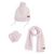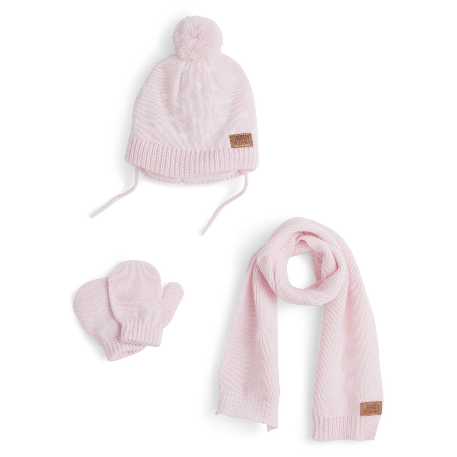 Tout douillet cet ensemble confectionné en maille jersey apporte douceur et confort à bébé fille ! Le bonnet à pois doublé polaire se pare d'un pompon sur le haut de la tête de cordons pour un bon maintien et d'une finition bord-côte. Les moufles possèdent un tour de poignet élastiqué qui maintient sans serrer et l'écharpe possède une finition bord-côte. De quoi nous faire craquer !