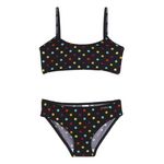 Cet ensemble de sous-vêtements Little Marcel fait l'unanimité chez les filles ! Matière douce, confortable et extensible. Imprimé pois colorés. Brassière : bretelles et base élastiquées. Culotte : taille élastiquée, fond doublé en coton. Finitions fantaisie sur les bords Lavable en machine à 30