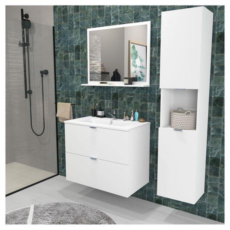 Ensemble de salle de bain meuble sous vasque 2 tiroirs + vasque + miroir + colonne FARO